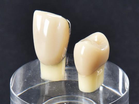 | メリット | ・自然な白色 ・ほとんど変色しない ・清潔でプラークがつきにくい(ムシ歯が再発しにくい、歯茎が腫れにくい) ・摩耗に強く耐久性に優れている ・金属アレルギーにならない(メタルフリー) |