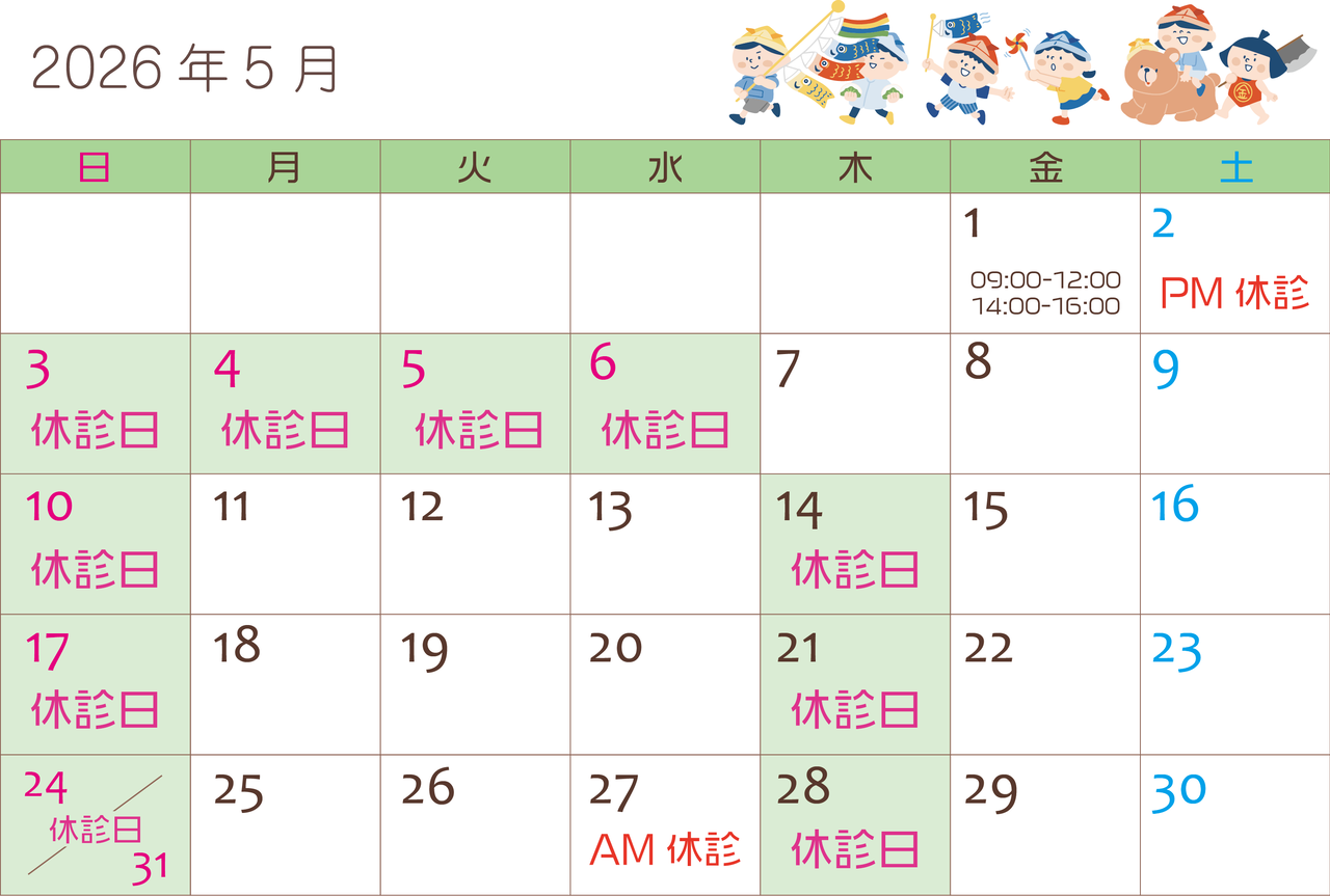 01日(金)02日(土)27日(水)は診療時間に変更がございます。