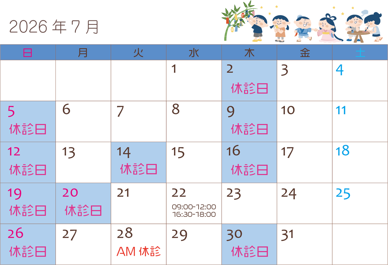 07月のカレンダーを更新しました。トップページ・ご予約ページにも掲載しておりますので、ご確認ください。