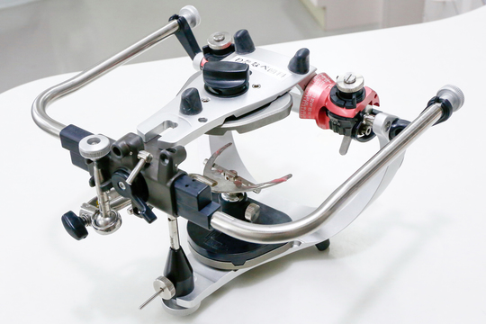 精確な補綴装置製作のため、下顎位の診断から補綴装置製作・口腔内セット後の評価まで、一連の診察に使用します。