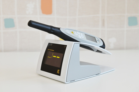 根管の長さを測定する「根管長測定器」を使用し、複雑な形状の根管の長さをきちんと計測。より精密な処置が行えるよう努めています。
